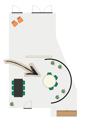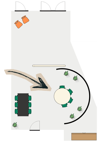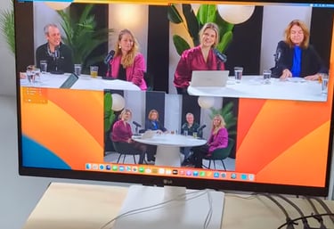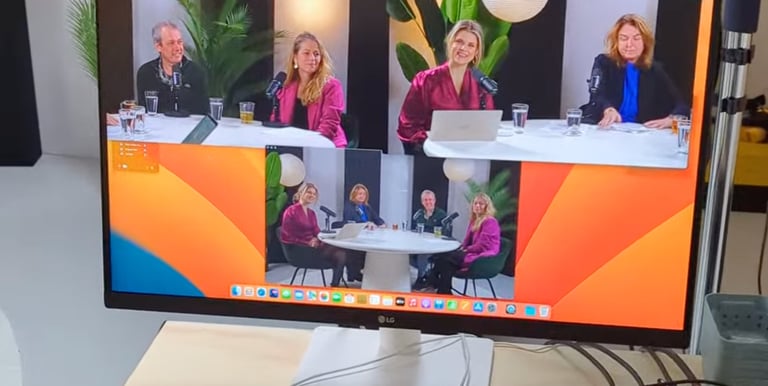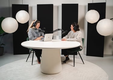 In de podcaststudio staat een ruime tafel met alle apparatuur die je nodig hebt om een (video-)podcast op te nemen met maximaal 4 personen. De ruimte is akoestisch aangepakt voor de beste audiokwaliteit. De apparatuur is met één druk op de knop te bedienen, ook als je er geen ervaring mee hebt.